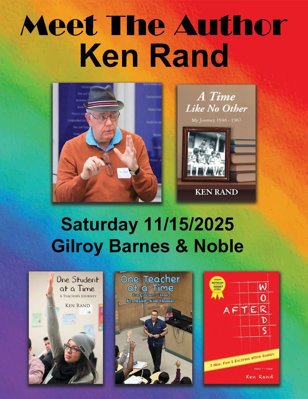 Thursday, November 4thItem LinkLocal Author, Ken Rand, is an award-winning Hartnell college math professor who after forty-seven years of teaching retired in 2015. Soon after retirement, Ken became a presenter and guest speaker at numerous statewide and national educational conferences. Please join us for a day of fun, entertainment and prizes.